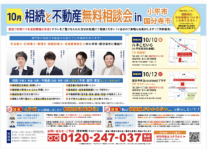 - 10/10(金)・10/12(日) 相続と不動産 無料相談会 in 小平市/国分寺市