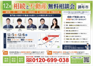 - 12/5 (金)・12/6(土) 相続と不動産 無料相談会 in 調布市